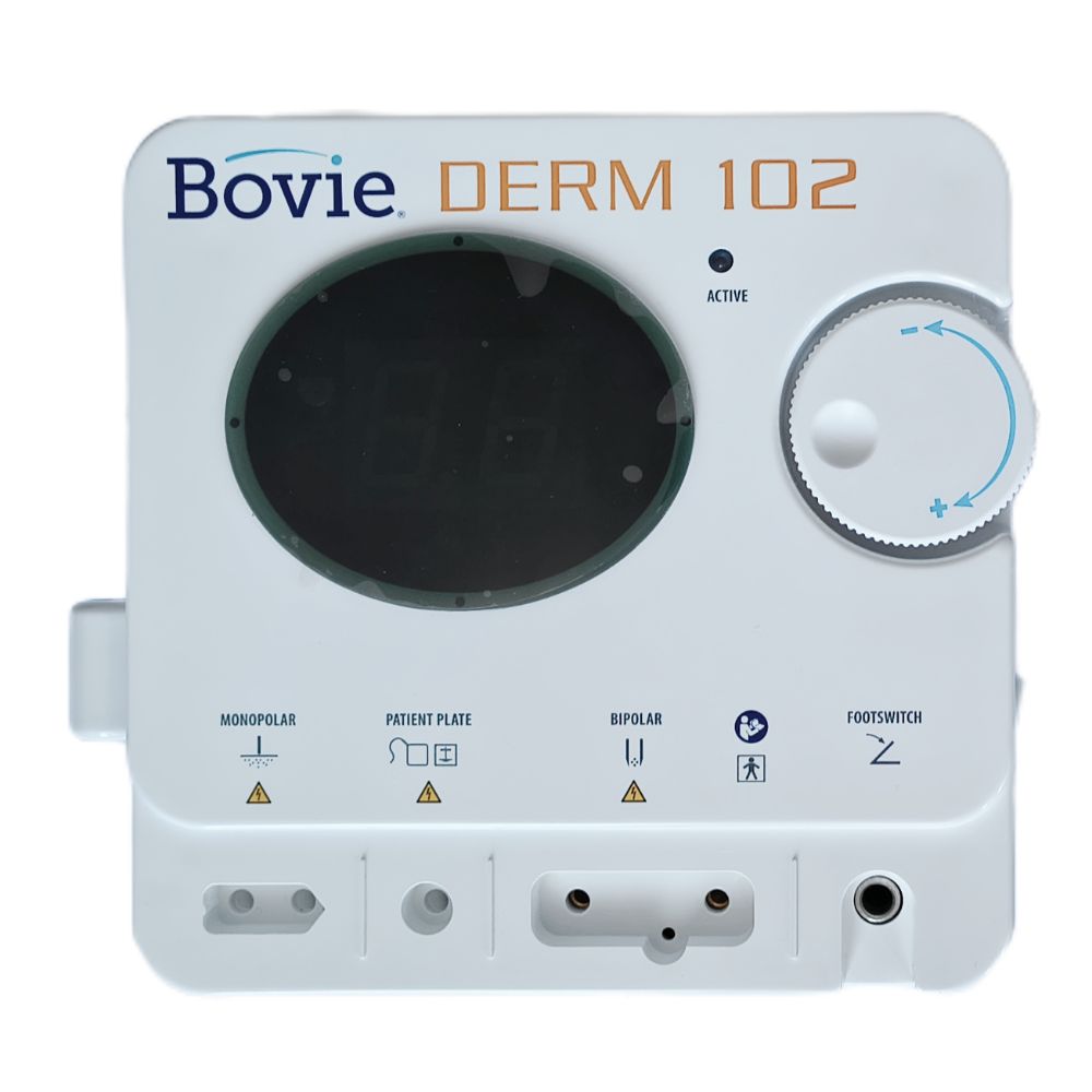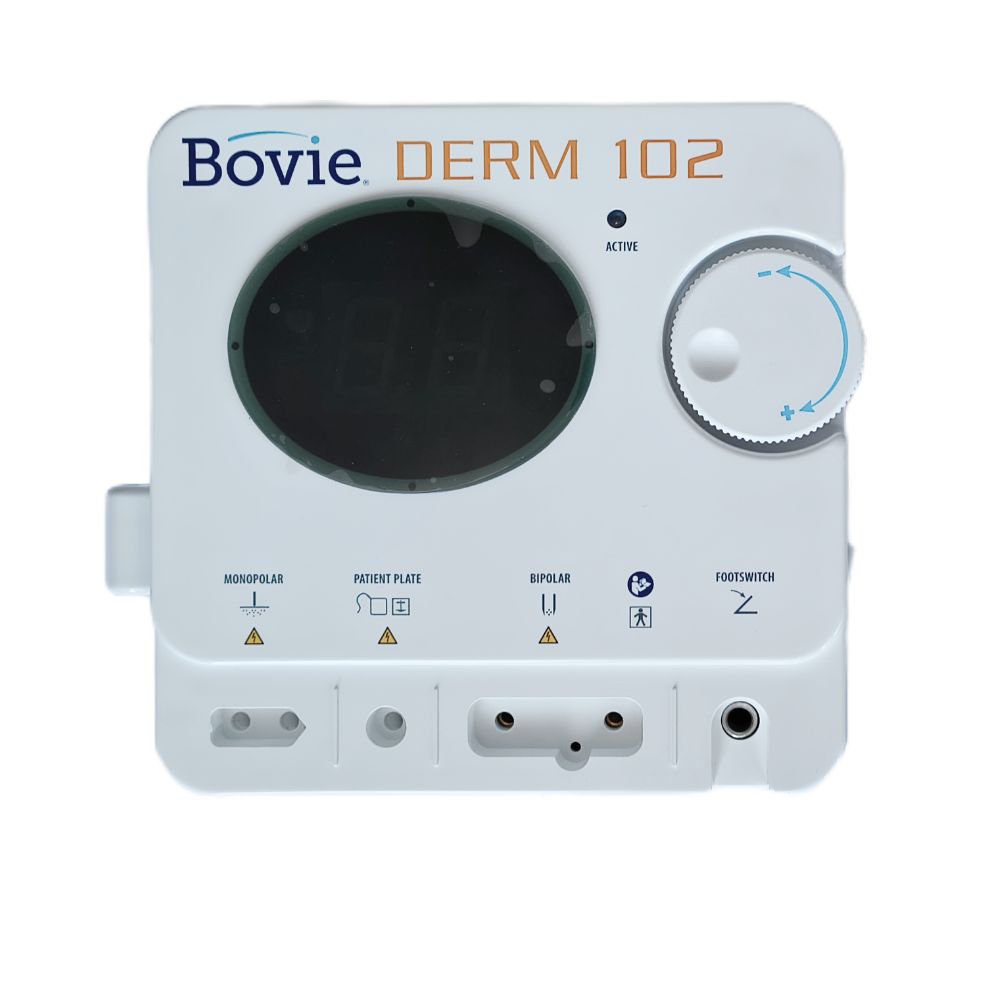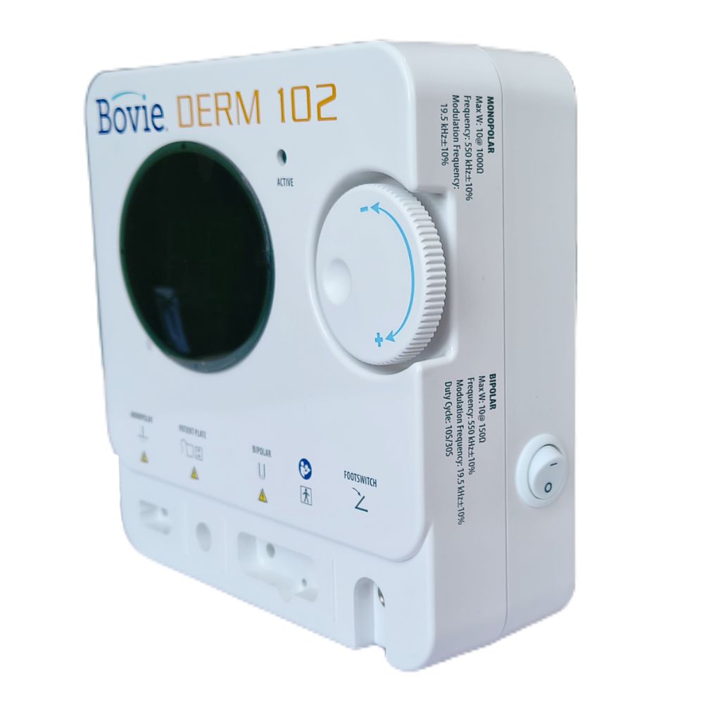 El Bovie Derm 102 es un desecador de alta frecuencia de 10 vatios diseñado específicamente para realizar procedimientos dermatológicos menores directamente en el consultorio.