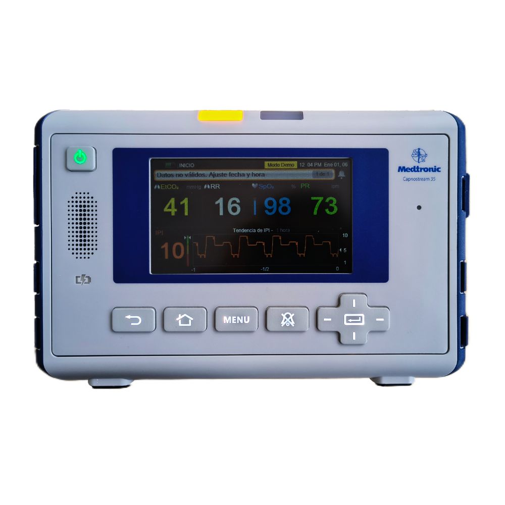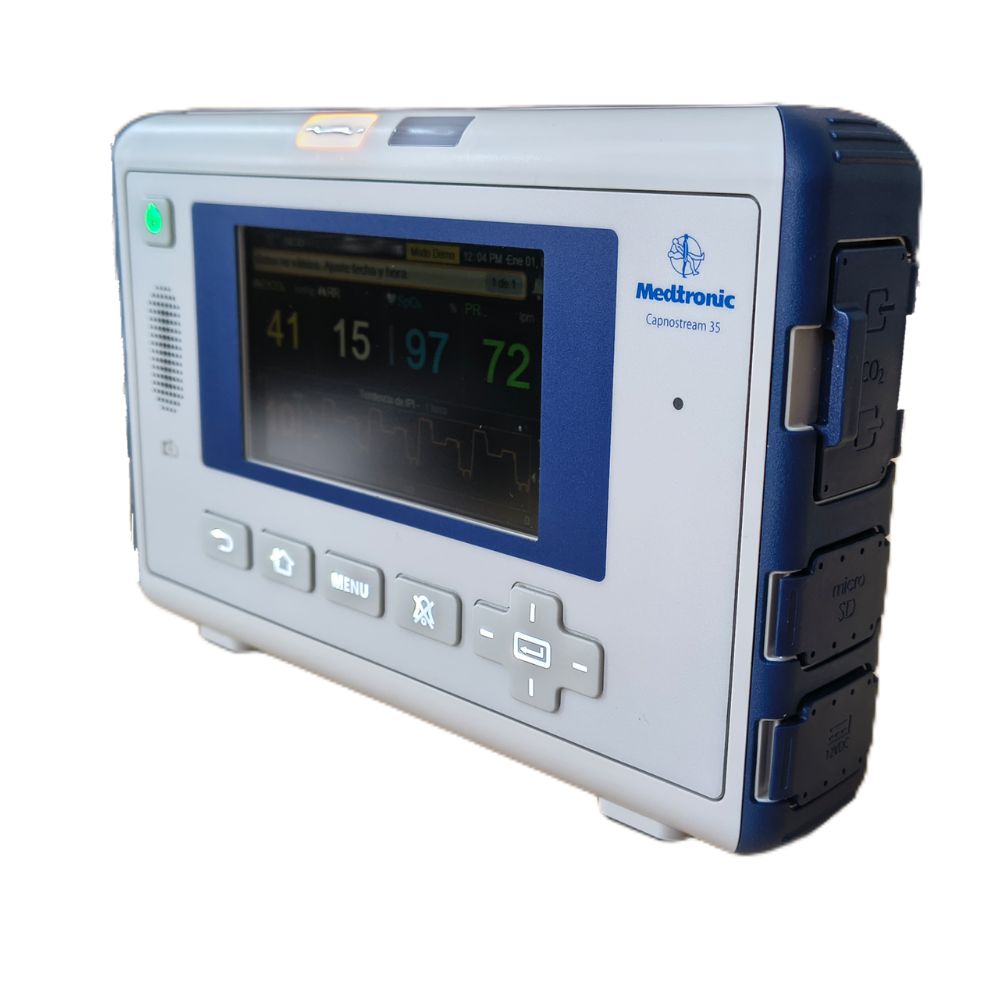 El Capnostream 35 de Medtronic es un monitor respiratorio portátil que brinda seguridad y certeza clínica mediante la medición continua de etCO₂, SpO₂, frecuencia respiratoria y cardíaca. Diseñado para adultos, pediátricos y neonatos, ofrece monitoreo confiable en cualquier entorno hospitalario o de transporte.